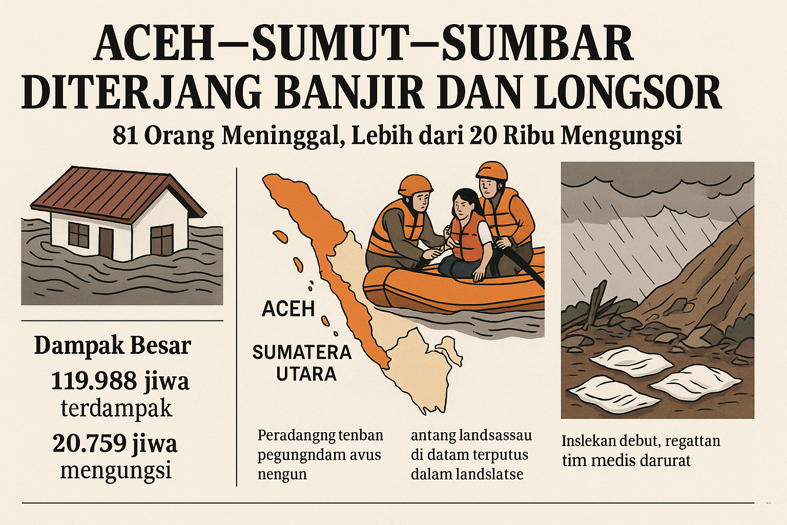 Menurut data terkini, total korban jiwa akibat bencana di ketiga provinsi sekarang mencapai 81 orang meninggal.