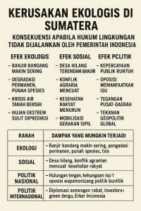 Jika Indonesia ingin serius menempatkan keselamatan lingkungan di atas keuntungan sesaat, maka perusakan hutan di Sumatera harus dilihat sebagai kejahatan terhadap sistem kehidupan, bukan hanya pelanggaran administratif.