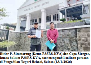 P3SRS KVA juga memastikan pelibatan Pemerintah Kota Bekasi dan Satpol PP dalam penertiban dan pengelolaan lahan bersama, guna mencegah penguasaan tanpa dasar hukum. “Jika ada yang menguasai lahan bersama tanpa hak, itu jelas perbuatan melawan hukum,” tegas Hitler.